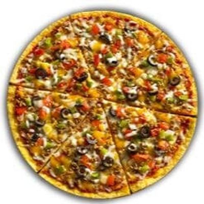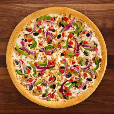 Tomato BASE, Capsicum, Fresh Tomato, Mushrooms, Olives, Pineapple, Red Onions and Cheese.