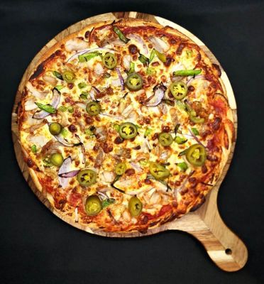 Hot Chilli BASE, Chicken, Capsicum, Jalapenos, Red Onions and Cheese.